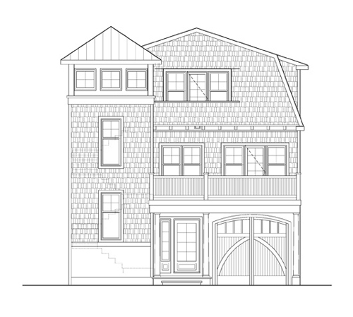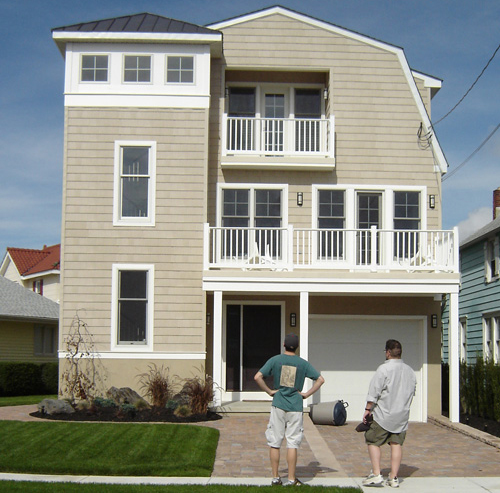 A beach house in Ocean City, New Jersey. Master on the third floor for spectacular views of the beach and ocean and porches on the front and back. The second floor has open living for a true beach style with the Dining Room, Living Room, and Rear dining terrace. The first floor has two guest rooms, a garage stall, and the entry with the stair in the tower on the corner.